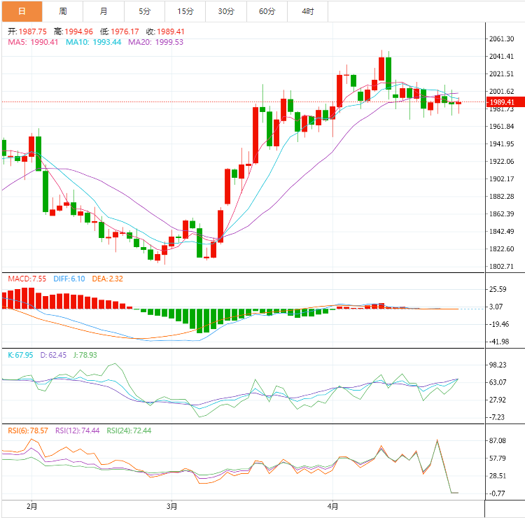 道明证券(TD Securities)分析师指出,在美国4月服务业PMI初值录得远超预期的53.7后,金价跌破1980美元/盎司。