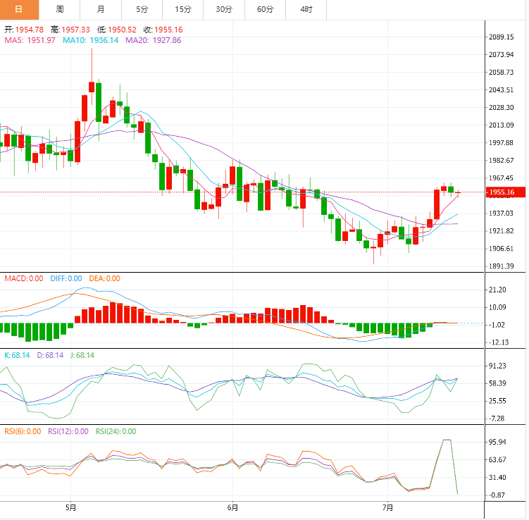 黄金价格仍然远远超过关键支撑汇流,包括10日移动均线和一周61.8%的斐波那契,截至发稿时约为1935美元。
