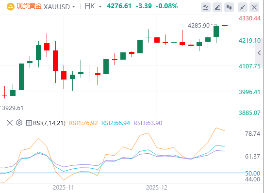 周四,国际现货黄金触及逾一个月以来的最高水平,截至目前,黄金报价4276.61。