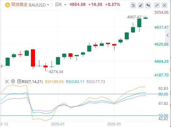 周四,国际现货黄金涨势不止,截至目前,黄金报价4954.59。