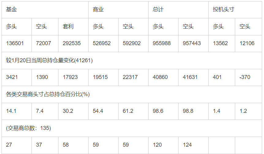 截止1月27日当周洲际交易所(欧洲)原油期货和期权分类持仓报告: