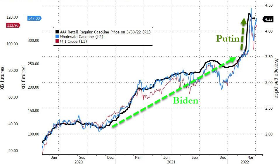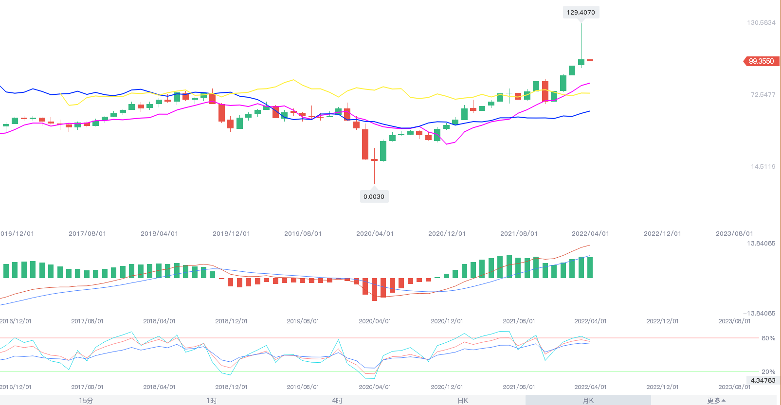 2022年第一季度,油市价格整体呈现震荡上涨行情,且高位波动性巨大。最高涨至130美元/桶附近,最低也在90美元/桶附近,WTI原油上涨了约40%,是自1999年以来最好的开局表现,汽油价格也因此创下历史新高。美国天然气价格则创下1990年以来的最佳开局,欧洲天然气的涨幅则更大。与去年同期相比,整体运行区间上移。从同比来看,处于近三年同期高位。