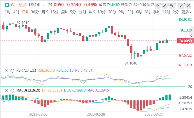 美国官方公布的数据显示,由于消费者支出疲软,2022年底美国经济增长率降至2.6%。另外,上周申请失业救济的美国人数上升到三周以来的最高点,达到19.8万人。市场等待美国周五公布的消费者支出和通胀数据,以及这些数据对美元波动的影响。美国原油库存骤降引发炼油厂检修高峰结束后供应紧缺的担忧。上周美国原油库存减少750万桶,为今年以来最大的降幅。油价期货公司(Price Futures Group)高级市场分析师Phil Flynn在每日报告中称,“炼油企业即将结束检修季节,全球对化石燃料的需求正在飙升。他认为这些因素将促成未来几周石油供应将进入新的旺季。”路透社援引瑞银(UBS)周四的评论说:“尽管我们认为油价短期内可能仍会波动,但我们仍预计未来几个季度, 中国原油进口增加和俄罗斯产量下降将推高油价。”全球能源公司分析师在一份报告中表示:“如果一切按预期进行,并且我们设法避免衰退,未来几个月油价将在每桶75美元至85美元左右波动。”