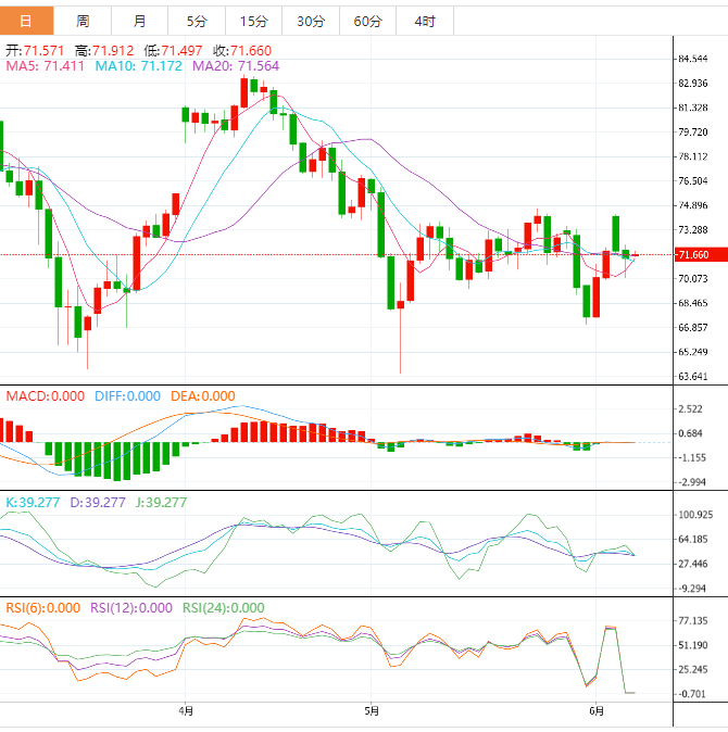 周二盘中,美油交投于71.66美元/桶附近,油价周二微跌,对全球经济增长低迷可能打击能源需求的担忧盖过了沙特承诺深化减产的影响,且EIA预计今年美国原油产量上升;但卡霍夫卡大坝被炸加剧地缘紧张,限制了油价跌幅。