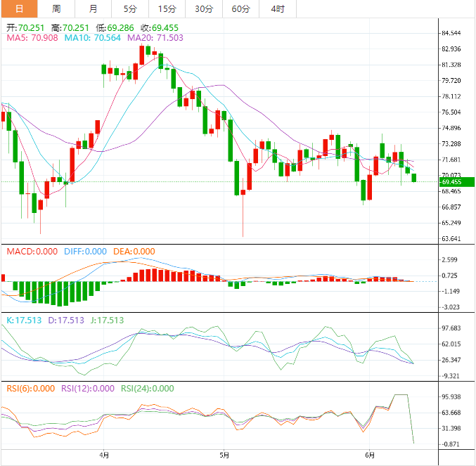 周一亚洲时段,美原油交投于69.44美元/桶附近;油价上周连续第二周下跌,因在沙特阿拉伯上周末决定减产后,美国燃料库存的增加和疲软的数据增加了对需求增长的疑虑。