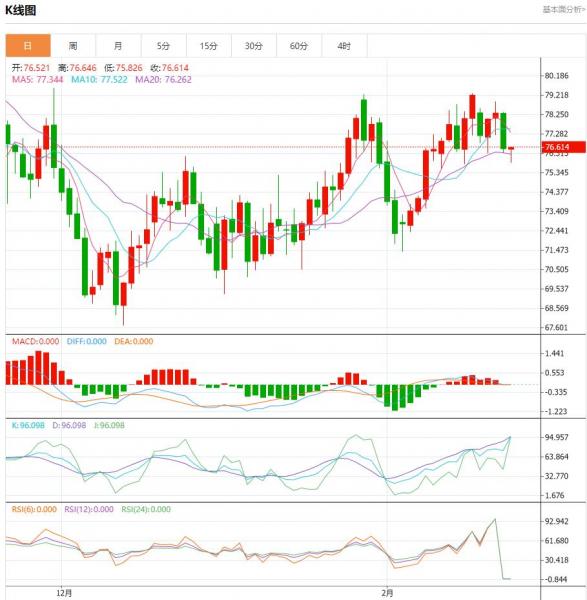 原油上周涨涨跌跌整体处于区间震荡,周线小阴线回落,周内区间依旧关注79.30-72.0.4小时图多次上探79.30高点处,久攻未破高,最终还是承压回撤。目前回撤接近首个支撑点75.80.若此位失守,则短线会继续向下回撤72.0低点一带。目前由于日线的探高回落,显示短线多头不强,加上4小时中轨转换成阻力,周初留意强弱转换。周内思路暂定是下探回升。