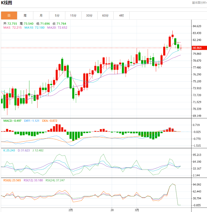 上方短期关注82.0-82.5一线阻力