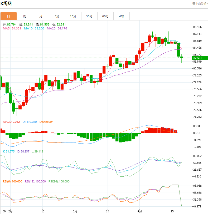 上方短期关注83.5-84.0一线阻力