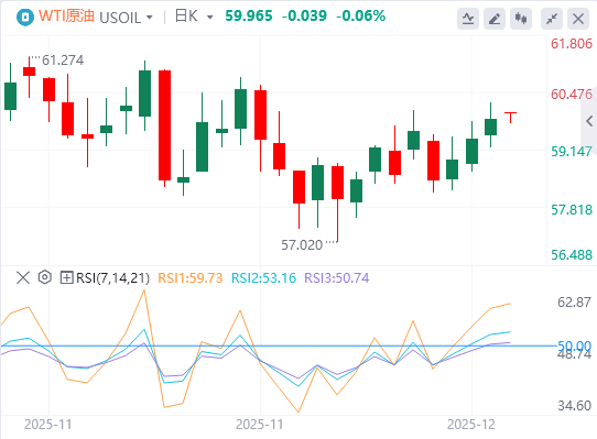 本周一WTI原油在两周高位附近震荡。市场普遍预期美联储本周将实施降息,这将通过改善经济增长预期进而修复能源需求逻辑;与此同时,市场正聚焦可能扰动俄罗斯及委内瑞拉石油供应的地缘政治风险。最新数据显示,市场目前定价美联储在本周利率决议上降息25个基点的隐含概率为84%。尽管如此,本次会议预计将面临显着的内部分歧,投资者正高度聚焦于美国央行的政策路径及其决策逻辑。