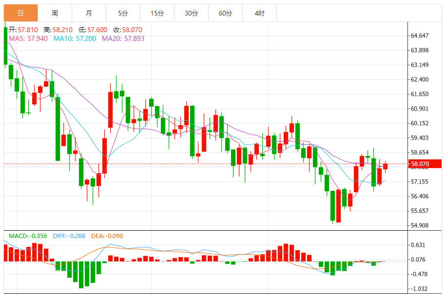 油价周一上涨逾1美元,交易员为中东局势紧张可能导致供应中断做准备,俄罗斯指责乌克兰对其总统普京的住所发动了无人机袭击。纽约商品交易所2月交割的西得州中质原油(WTI)期货价格上涨1.34美元,涨幅为2.36%,收于每桶58.08美元。