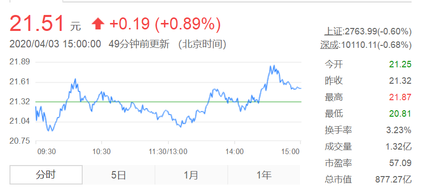 4月3日三安光电股票收盘价21.51元涨幅1.89%。