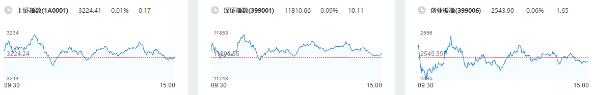 周三(18日),A股三大指数高开后呈窄幅震荡走势。截至收盘,沪指涨0.01%,报3224.41点;深证成指涨0.09%,报11810.66点;创业板指跌0.06%,报2543.90点。沪深两市所有交易个股涨跌比为3069:1735,两市涨停39家,跌停8家。