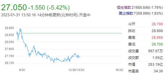 今日走势分析:餐饮股今日继续下跌,截至发稿,颐海国际(01579)跌5.42%,报27.05港元;特海国际(09658)跌5.14%,报15.12港元;海底捞(06862)跌4.14%,报20.85港元;九毛九(09922)跌2.03%,报19.74港元。
