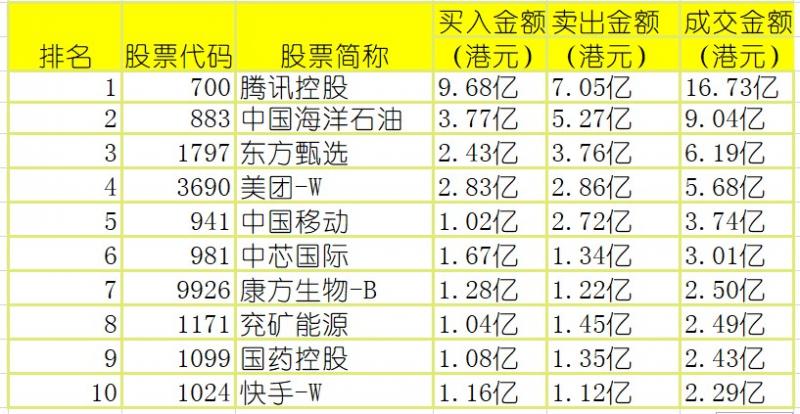 今日港股通数据一览:腾讯控股成交额居首,达16.73亿港元
