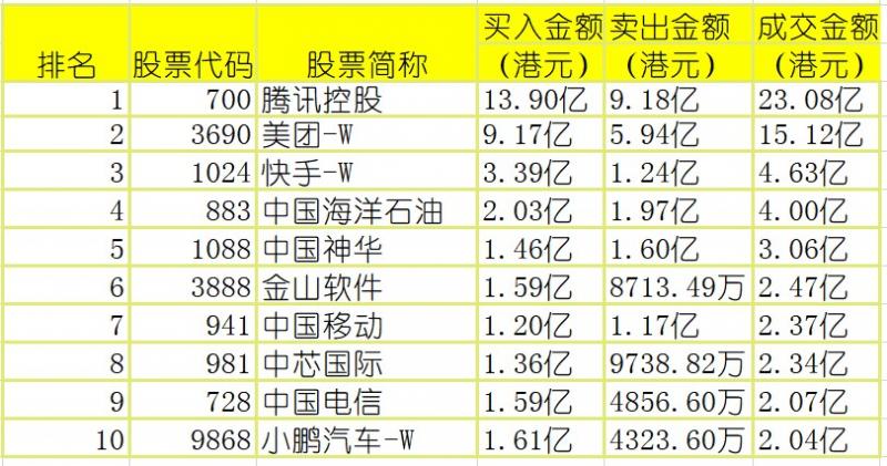 亚汇网实时数据统计:截至3月28收盘,腾讯控股、美团-W、中国移动(沪)成交前三,腾讯控股、美团-W、快手-W(深)成交前三