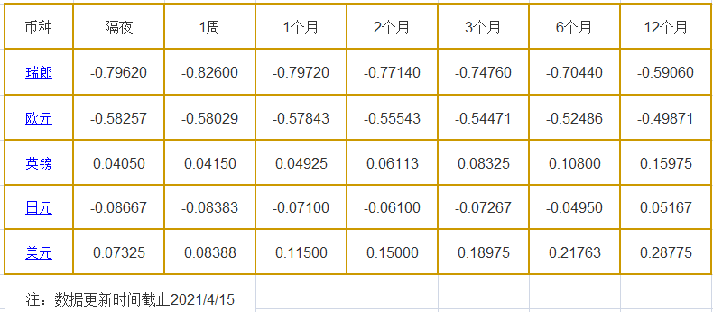 4月15日伦敦银行同业拆借利率: