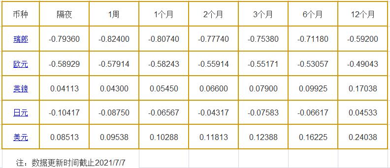 7月7日伦敦银行同业拆借利率: