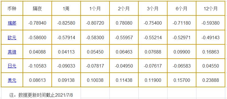7月8日伦敦银行同业拆借利率:
