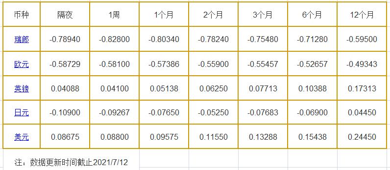 7月12日伦敦银行同业拆借利率: