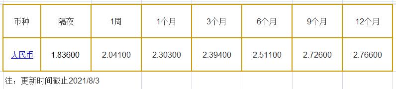 中国银行同业拆放利率(China Interbank Offered Rate,简称CHIBOR)。同业拆借利率指金融机构同业之间的短期资金借贷利率。它有两个利率,拆进利率表示金融机构愿意借款的利率;拆出利率表示愿意贷款的利率。