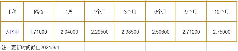 8月4日中国银行间同业拆借利率人民币: