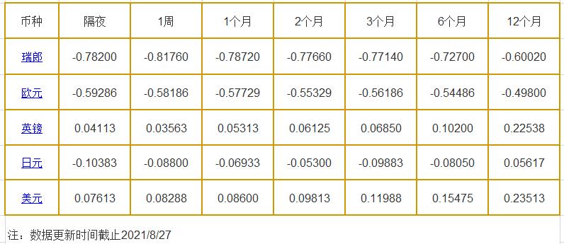 8月27日伦敦银行同业拆借利率: