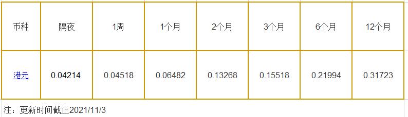 | 币种 | 隔夜 | 1周 | 2周 | 1个月 | 2个月 | 3个月 | 6个月 | 12个月 |
