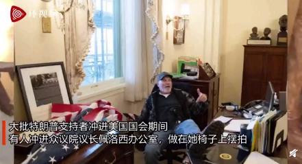 据说,1月6日,支持特朗普的抗议者们袭击国会大楼,并破坏了建筑设施。部分示威者进入美国国会区域,并攻破了国会大厦,议员们已被紧急疏散。在特朗普支持者闯进美国国会时,有执法人员开枪,一人在美国国会大厦内被击中。大批特朗普支持者冲进美国国会期间,有人冲进众议院议长佩洛西办公室,做在她椅子上摆拍。