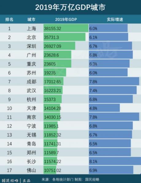2020年,哪些城市GDP跻身万亿俱乐部?